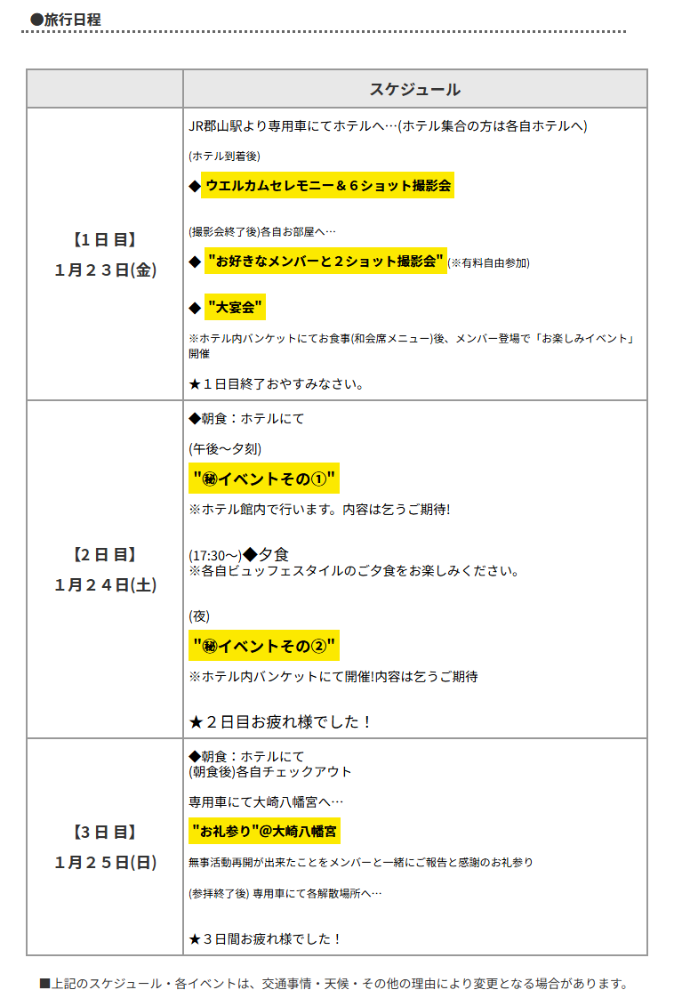 ※上記は、11月3日時点での予定となります。確定の時間は後日メール配信させていただく「出発当日のご案内」にてご確認下さい。